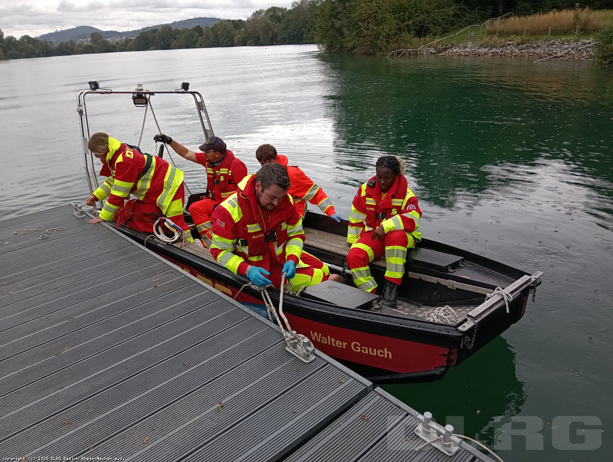 Die Prüfung begann bereits um 9 Uhr, zu diesem Zeitpunkt noch mit bewölktem Himmel, aber Trocken. Die Prüflinge mussten in mehreren Prüfungsteilen ihre Kenntnisse in einer theoretischen Prüfung, Knotenkunde und Seemannschaft soweit bei einer Einsatzübung unter beweis stellen. Für die "richtigen Einsatzbedingungen" sorgte dann der nach dem Mittagessen einsetzende Regen, der dann dafür sorgte, dass Teilnehmer wie Prüfungsteam gut nass wurden.